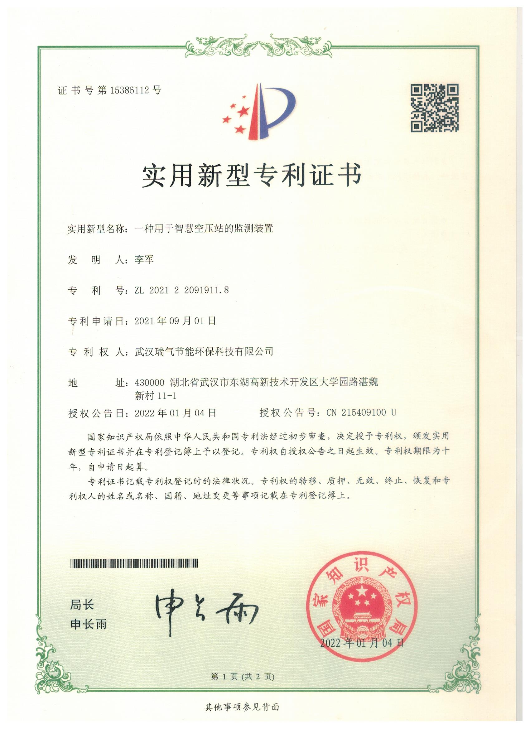 实用型专利证书