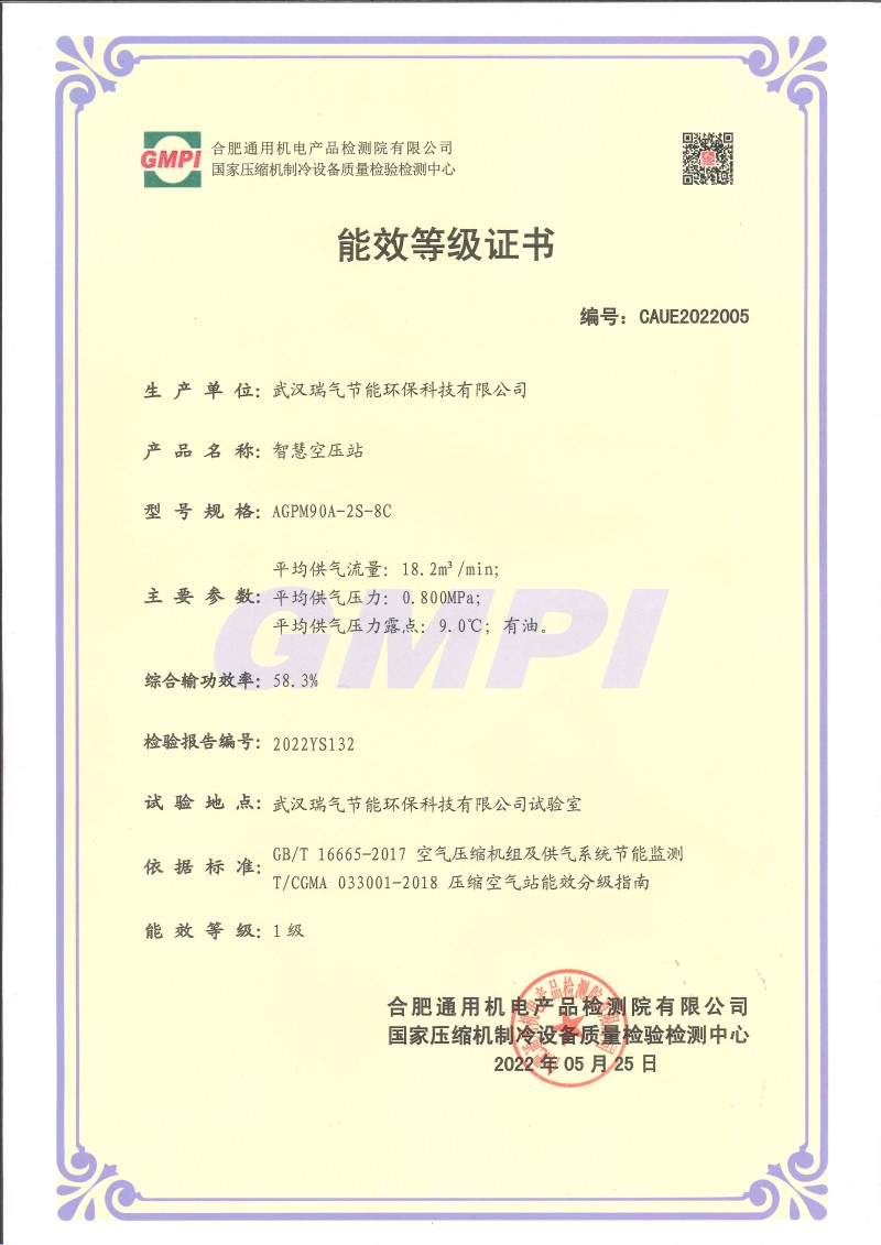 发明专利证书武汉瑞气节能环保科技有限公司一种基于物联网智慧空压站管控系统及其方法