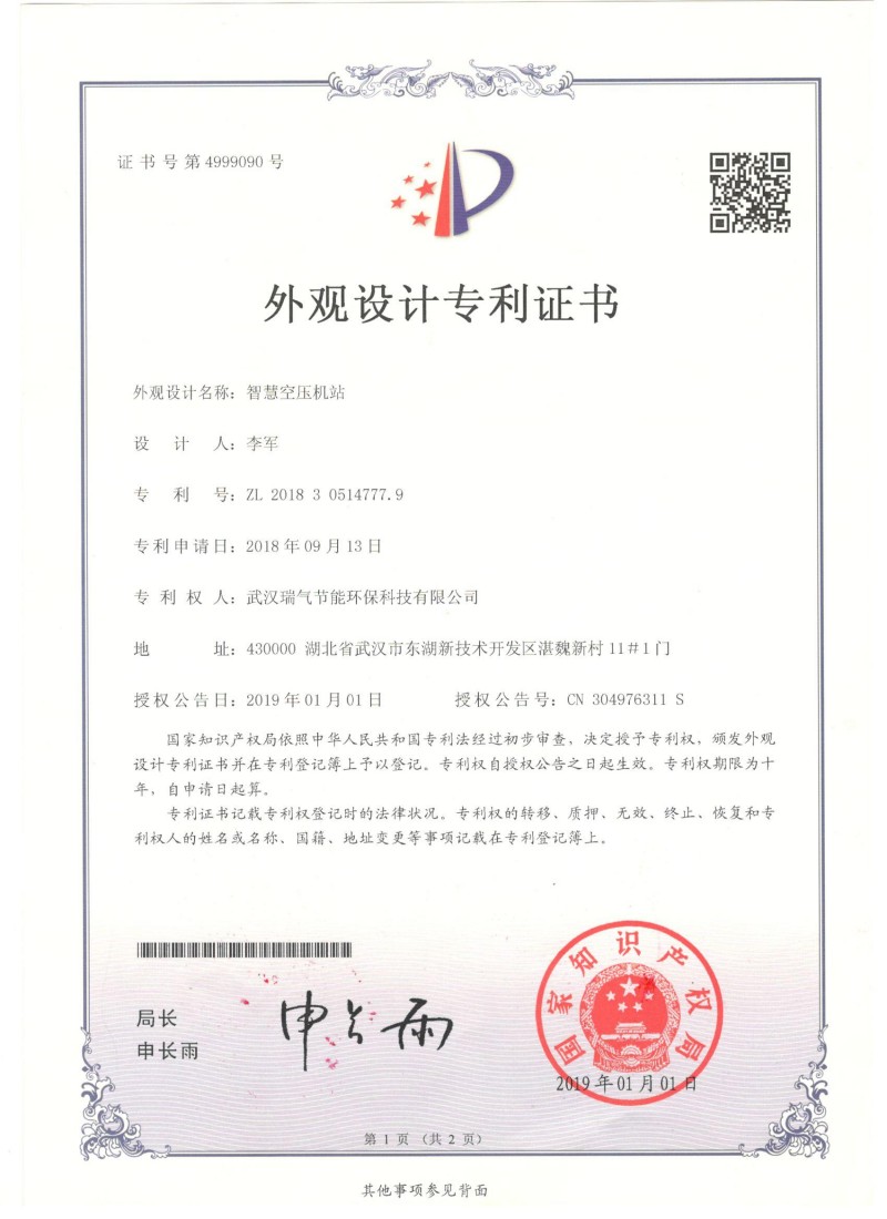 外观设计专利证书(智慧空压机站)