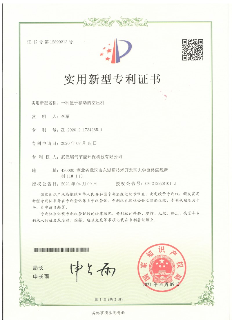 一种磁悬浮一级能效空压机_实用新型专利证书
