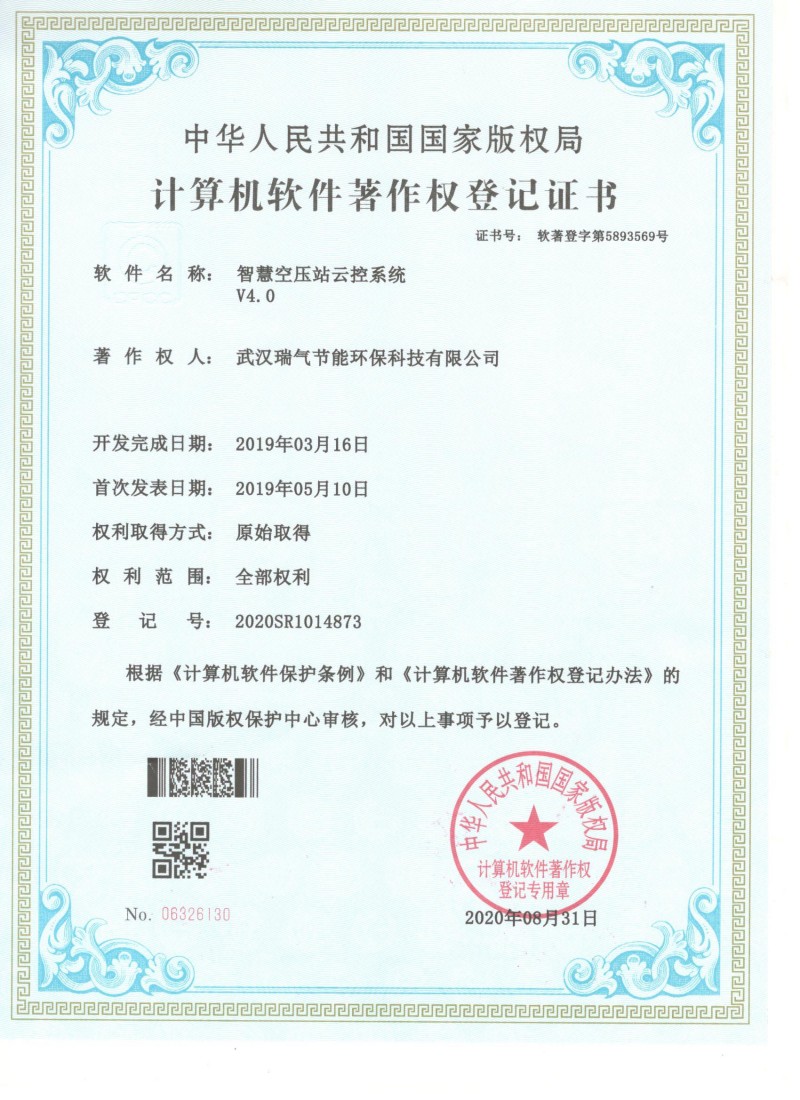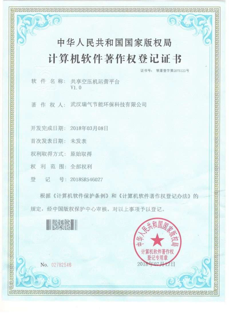 软件著作权登记证书(共享空压机运营平台)